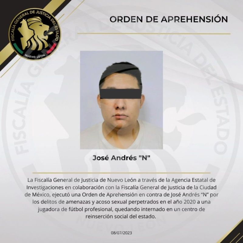 Luego de esto, fue detenido en la Ciudad de México por elementos de inteligencia de la Secretaría de Seguridad Ciudadana y posteriormente el acosador fue trasladado a Nuevo León, pues allá tenía orden de aprehensión y ahora de acuerdo con la Fiscalía, José Andrés ‘N’ ha sido vinculado a proceso y prisión preventiva.
