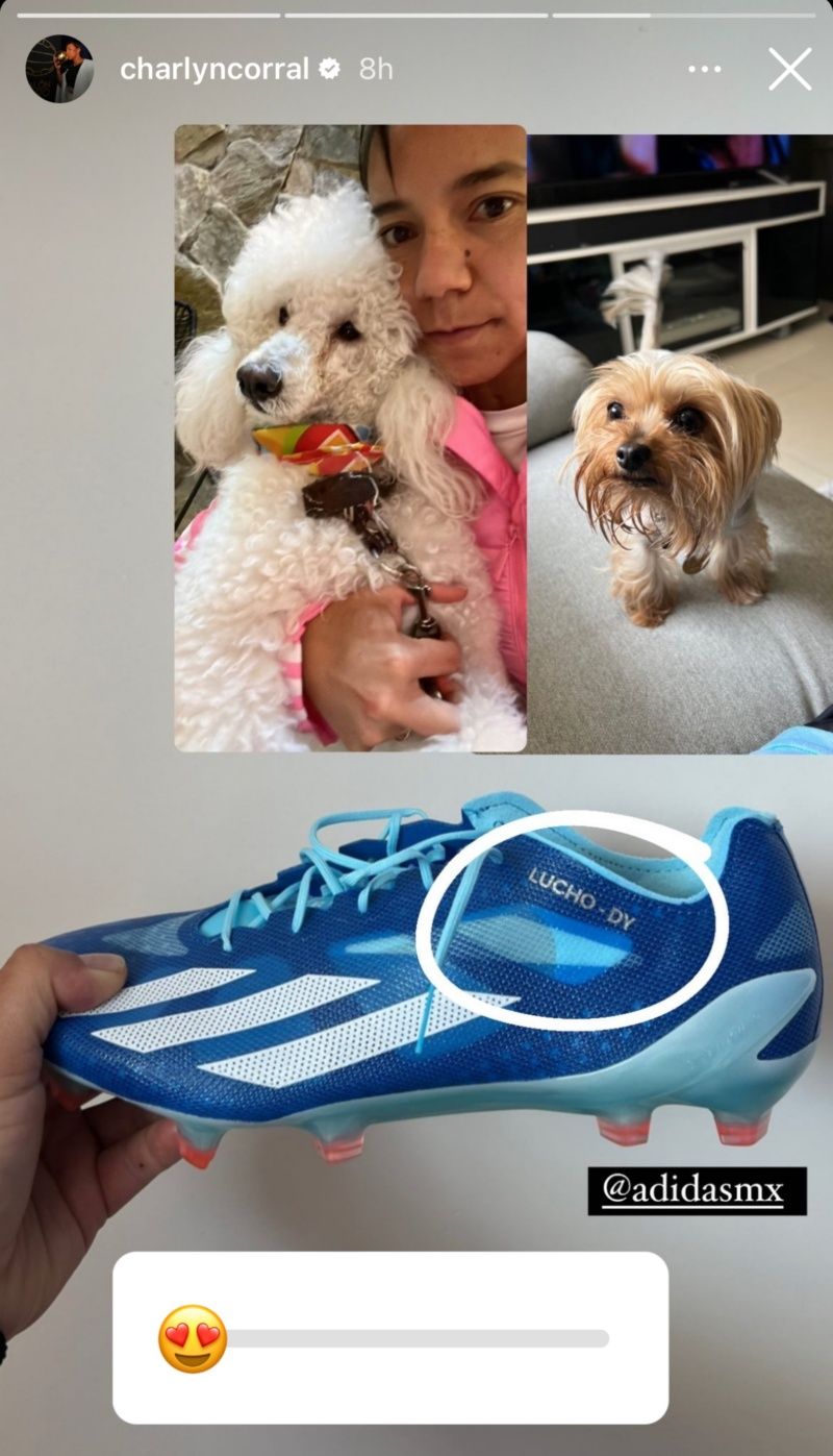 Por medio de sus redes sociales, la jugadora compartió con sus seguidores la foto de sus botines con el nombre de ‘Lucho-DY’ grabado, que es como se llaman sus dos mascotas, un perrito de raza poodle y otro yorkshire terrier.
