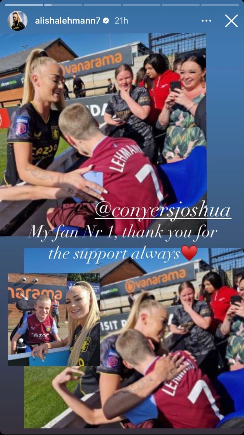 La jugadora publicó una foto en donde se ve abrazando y conviviendo con el que dice ser su mayor fanático. Es un pequeño de nombre Joshua Conyers, Alisha le agradeció por sus muestras de cariño. “Mi fan número uno, gracias por tu apoyo siempre”, escribió la delantera.