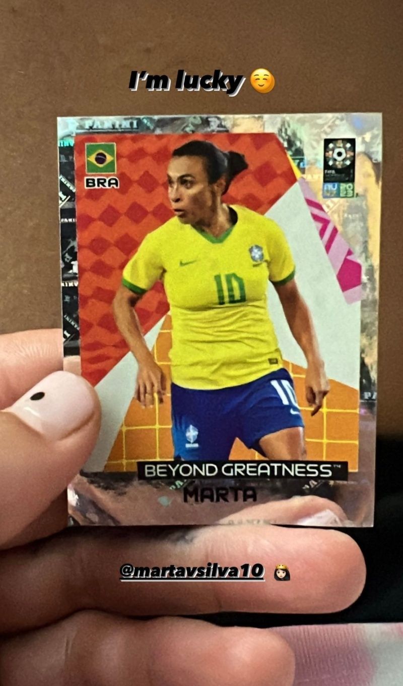 Una de las futbolistas que han sido inspiración para Hermoso ha sido la brasileña y máxima goleadora en la historia de los mundiales, Marta Vieira da Silva, por lo que Jenni se encuentra emocionada porque ya le salió la estampa de la jugadora histórica en el álbum.