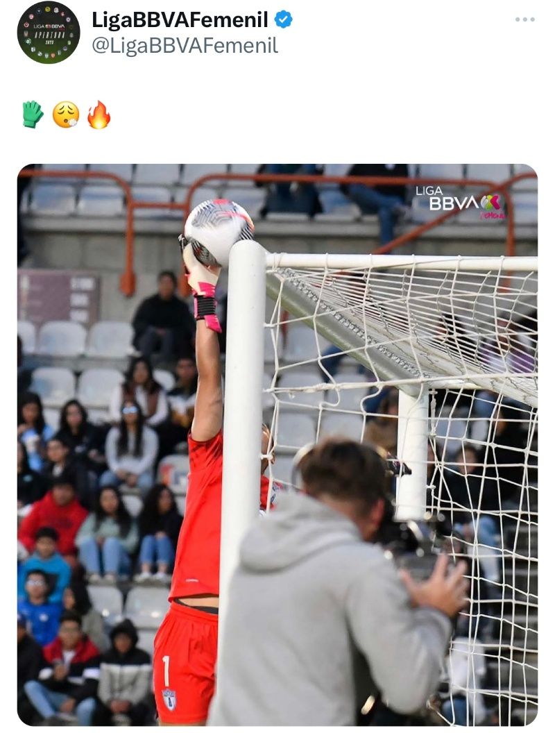 La Liga MX Femenil salió en defensa de sus guardametas a través de un tweet, publicando una foto en la que se muestra una atajada de la portera de Pachuca, Esthefanny Barreras, quien está saltando y casi tocando el travesaño sacando el esférico.