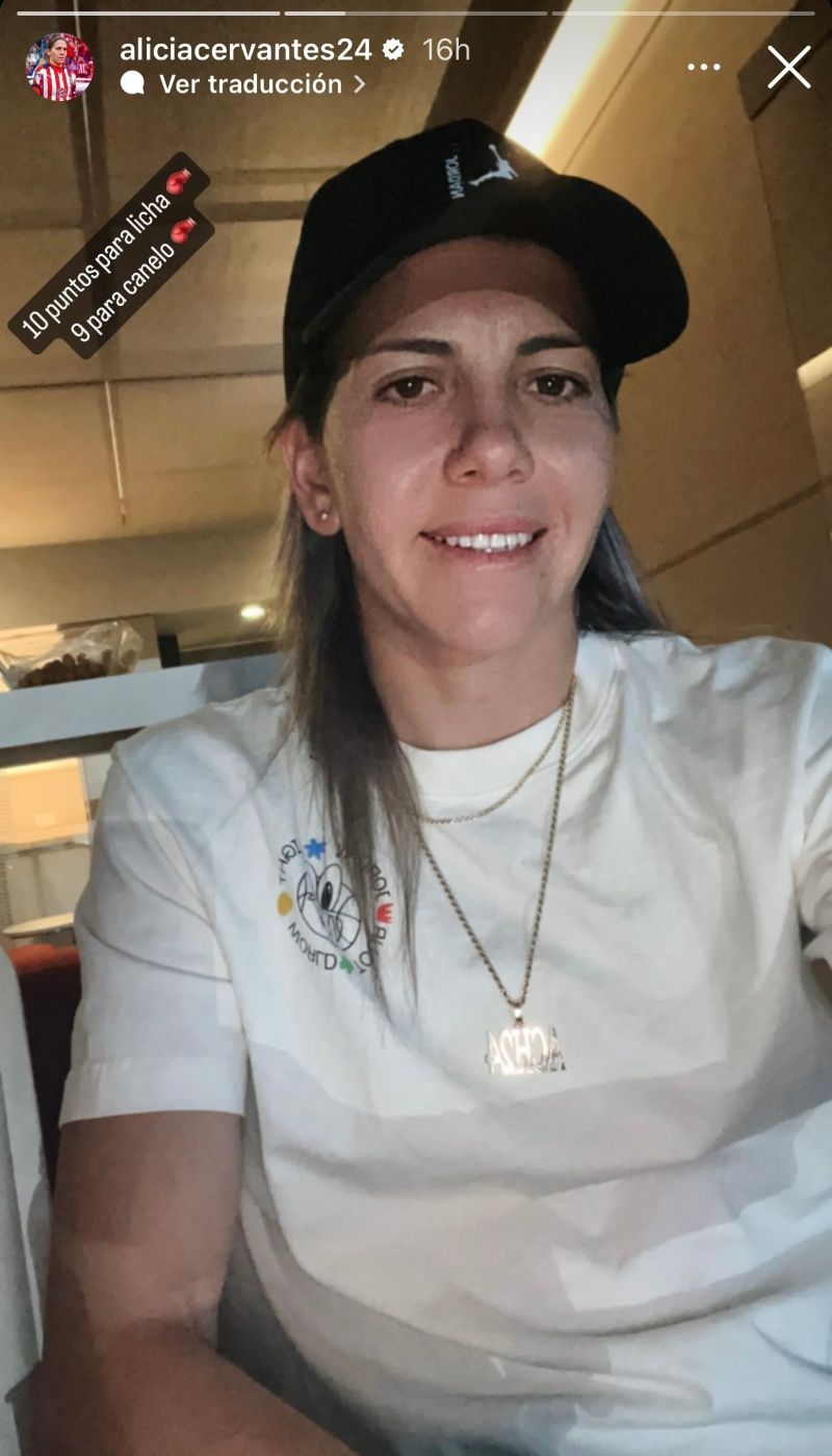 También, mediante su cuenta de Instagram, la jugadora Alicia Cervantes publicó que asistió a ver a uno de los deportistas que más admira, pues publicó un par de historias en el Estadio Akron, haciendo también algunas bromas como “10 puntos para Licha, 9 puntos para Canelo”.