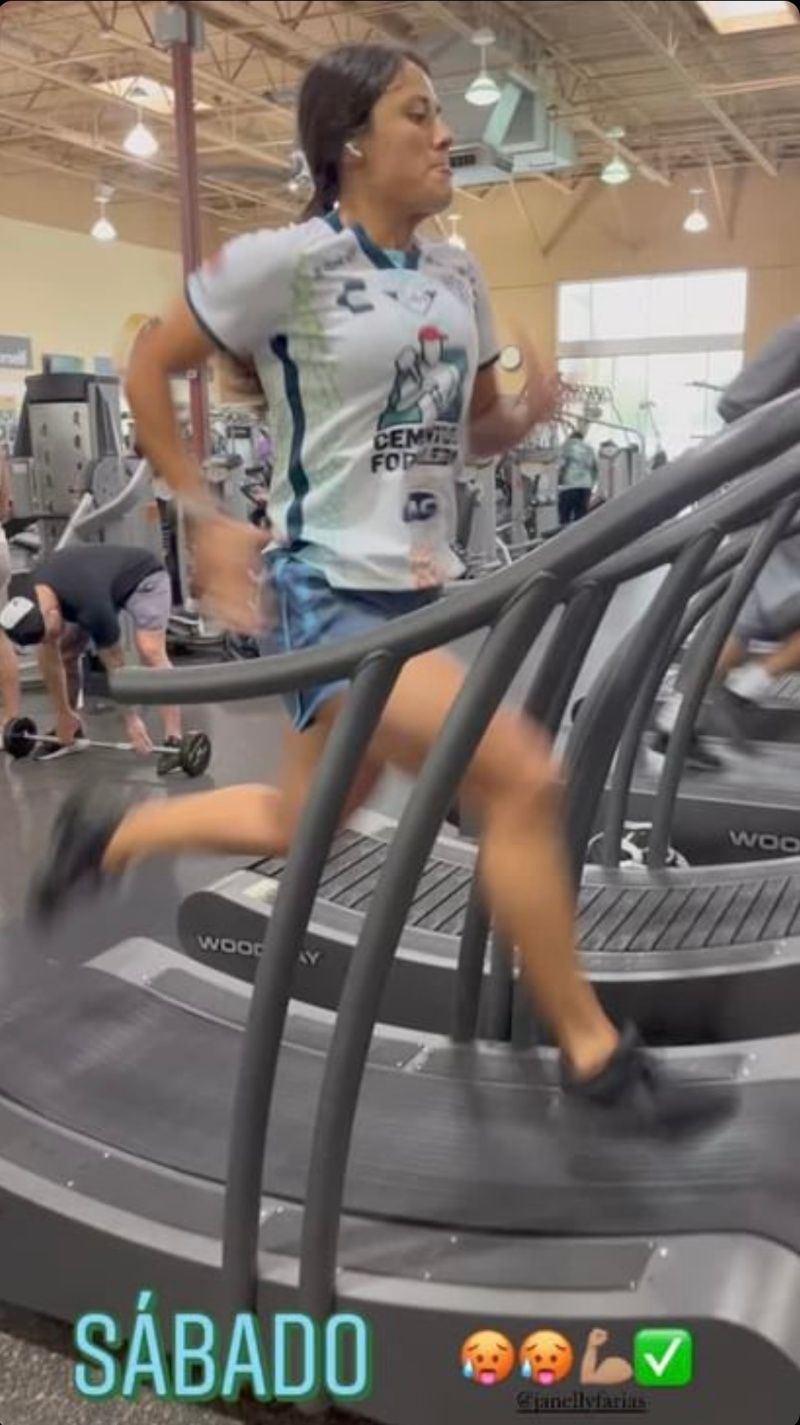 La jugadora de Monterrey se encuentra entrenando con la camiseta de Pachuca, pero esto podría tener una razón, ya que se trata del jersey de su novia, pues en el dorsal tiene en número tres con el nombre de Farías.