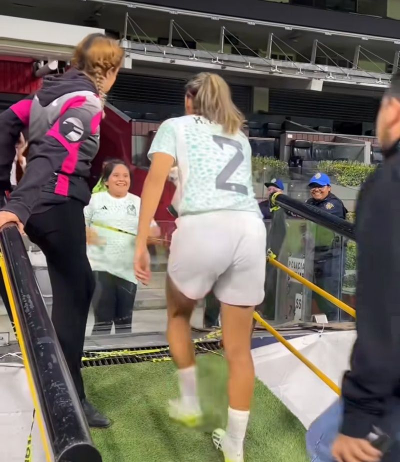 La jugadora acostumbra a hacer esto en cada partido, pues ha dicho en múltiples ocasiones que se siente afortunada y agradecida por vestir los colores de la camiseta mexicana y en esta ocasión le cumplió el sueño a una pequeña.