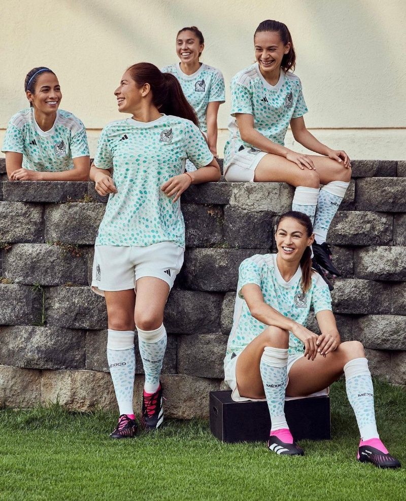 “Es un jersey inspirado en la belleza oculta del océano. El llamativo estampado en el jersey de visitante versión jugador de la Selección Nacional de México Femenina evoca la majestuosidad de los tiburones ballena que se encuentran en proximidad de la península de Yucatán”, comentó Adidas.